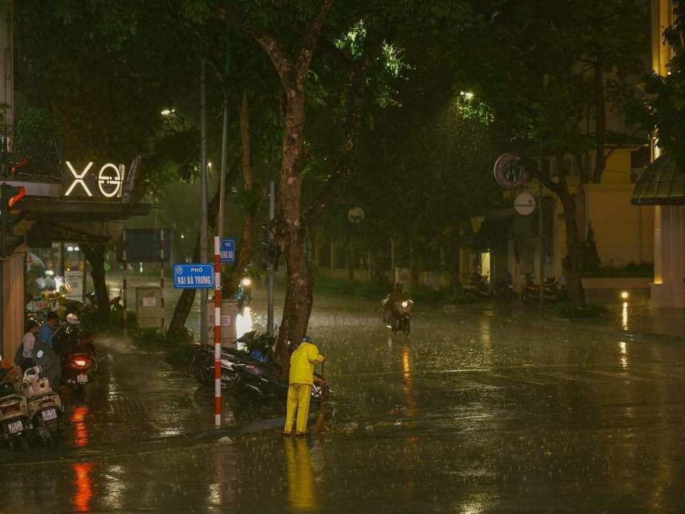 Mưa to kèm sấm sét trong tối 17/6 tại nhiều khu vực nội thành Hà Nội. Ảnh: CCHN