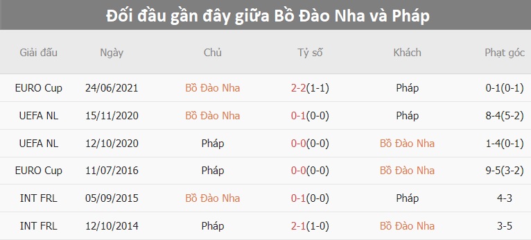 Tỷ lệ bàn thắng (2): 4/5 cuộc đối đầu trước đó giữa hai đội dưới mốc tổng bàn thắng. Điều tương tự cũng xảy ra ở 2 trận vừa qua của Bồ Đào Nha và 6 trận liên tiếp của Pháp.