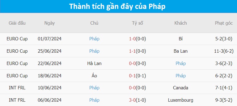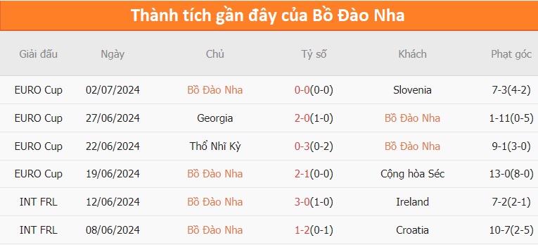 Tỷ lệ châu Á (1/4:0): Bồ Đào Nha thắng Pháp 3/4 cuộc đối đầu trước đó theo tỷ lệ châu Á. Họ thắng 2 và thua 2 trong 4 trận tại Euro 2024. Phía bên kia, Pháp thua 7/9 trận gần đây.