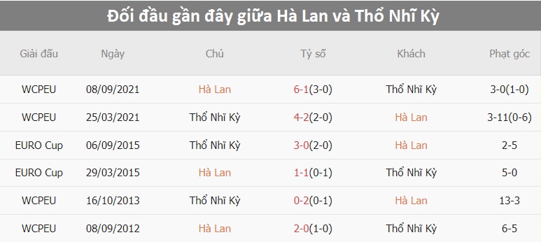 Tỷ lệ bàn thắng (2 3/4): Cả 3 cuộc đối đầu trước đó giữa hai đội vượt mốc tổng bàn thắng. Điều tương tự cũng xảy ra ở 8/9 trận gần đây của Hà Lan và 5 trận liên tiếp của Thổ Nhĩ Kỳ.