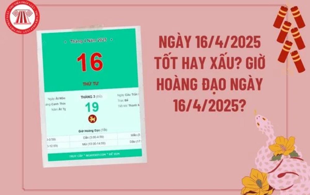 Dự đoán kết quả ngày 16 tháng 4 năm 2025 tốt hay xấu? Giờ hoàng đạo ngày 16 4 2025 tài lộc? Xem ngày tốt xấu ngày 16 4 2025?