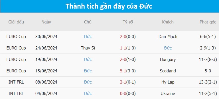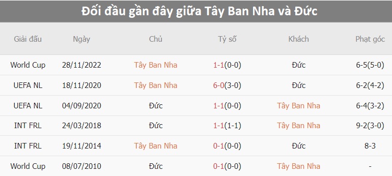 Tỷ lệ châu Á (0:0): Tây Ban Nha thắng Đức 3/4 cuộc đối đầu trước đó theo tỷ lệ châu Á (hoà 1). Họ cũng thắng 5/6 trận gần đây. Phía bên kia, Đức thắng 3/4 trận mới nhất.
