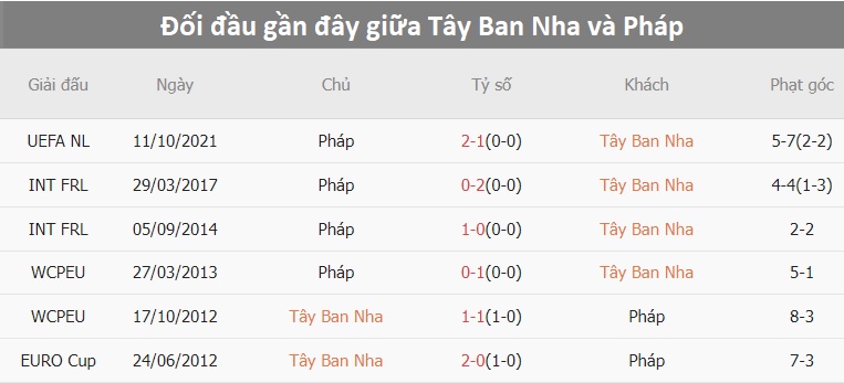 Tỷ lệ bàn thắng (2): 6/7 cuộc đối đầu trước đó giữa hai đội dưới mốc tổng bàn thắng. Điều tương tự cũng xảy ra ở 3/4 trận vừa qua của Tây Ban Nha và 7 trận liên tiếp của Pháp.