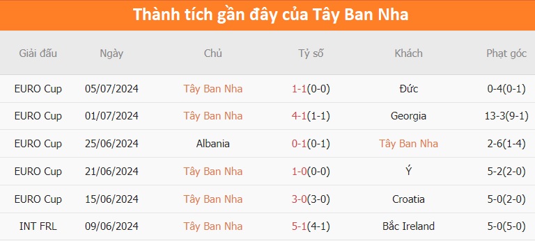 Tỷ lệ châu Á (0:0): Tây Ban Nha thắng 5/7 trận gần đây theo tỷ lệ châu Á, chỉ thua 1 (hoà 1). Ngược lại, Pháp thua 8/10 trận mới nhất, gồm 3/5 trận ở Euro 2024.