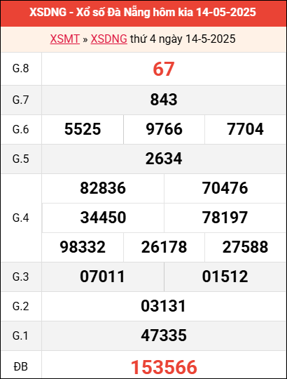 Bảng kết quả Đà Nẵng ngày 14/5/2025 tuần trước