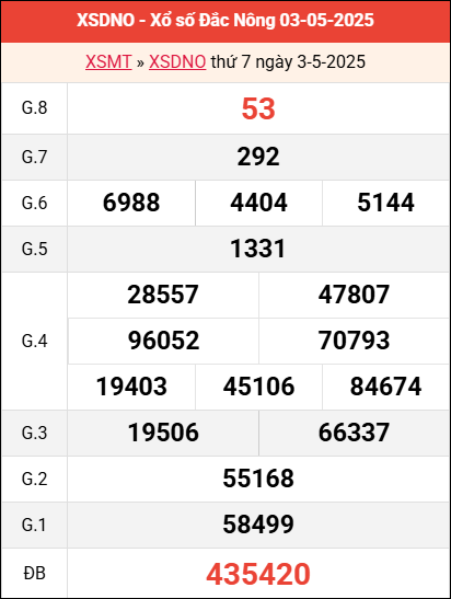 Bảng kết quả Đắk Nông ngày 3/5/2025 tuần trước
