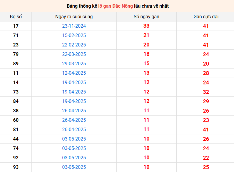 Bảng thống kê lô gan Đắc Nông lâu về nhất 19/7/2025