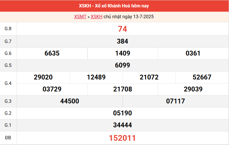 Xem kết quả Khánh Hòa ngày 13/7/2025 tuần trước
