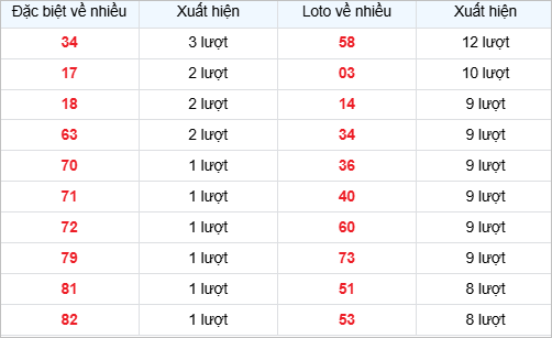 ⭐️ Thống kê lô tô và giải đặc biệt về ít nhất trong 30 lần quay