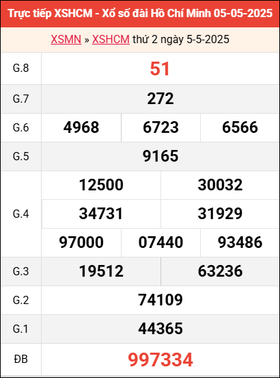 Bảng kết quả TPHCM ngày 5/5/2025 tuần trước