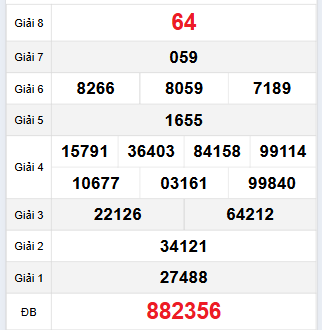 - Các cặp số về nhiều nhất gần đây: 65 - 64 - 16 - 54 - 58