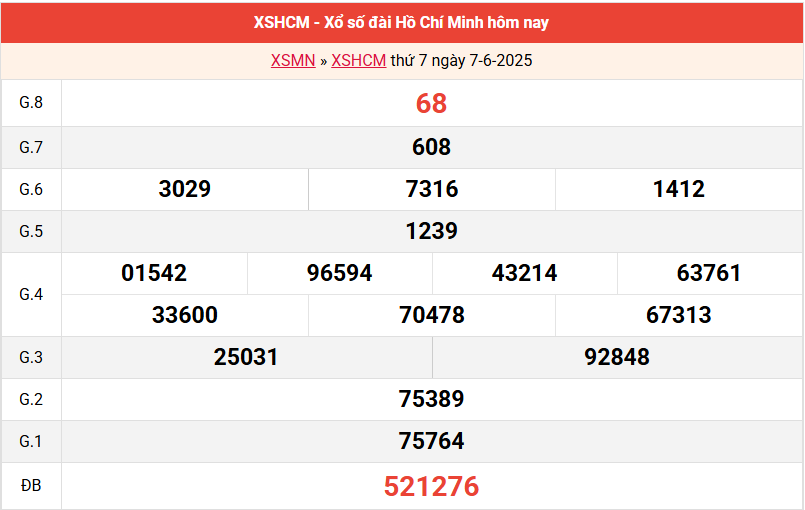 Kết quả xổ số Hồ Chí Minh ngày 7/6/2025