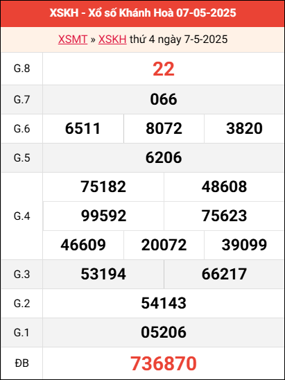 Bảng kết quả Khánh Hòa ngày 7/5/2025 tuần trước