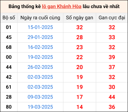 Bảng lô gan Khánh Hòa lâu về nhất 11/5/2025