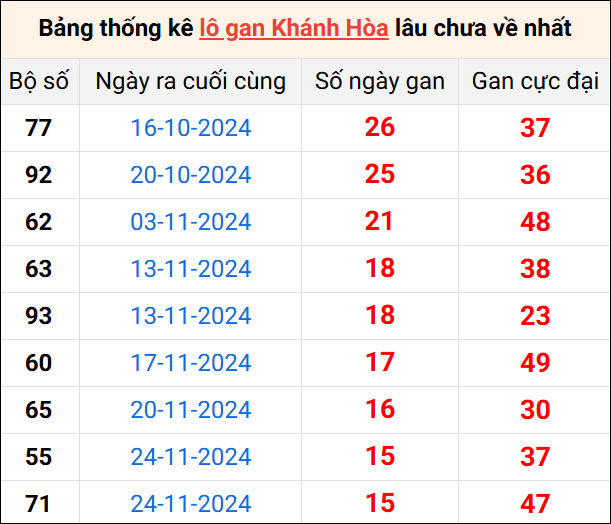 Bảng lô gan Khánh Hòa lâu về nhất 19/1/2025