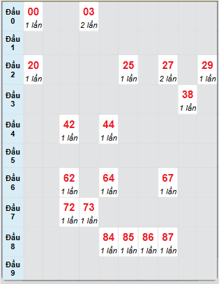- Các cặp số về nhiều nhất gần đây: 30 - 62 - 87 - 09 - 59