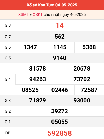 Bảng kết quả Kon Tum ngày 4/5/2025 tuần trước