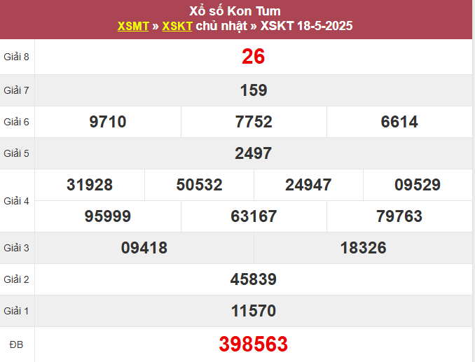 Kết quả xổ số Kon Tum ngày 18/5/2025