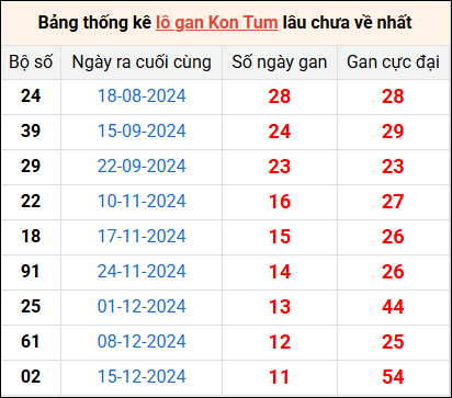 Bảng thống kê lô gan Kon Tum lâu về nhất 9/3/2025