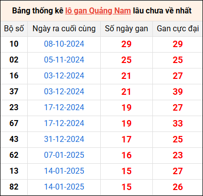 Bảng thống kê lô gan Quảng Nam lâu về nhất 6/5/2025
