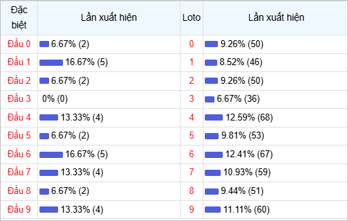 ⭐️ Thống kê tần suất đầu đuôi đặc biệt về trong 30 ngày trở lại