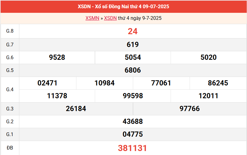 Bảng kết quả Đồng Nai ngày 09/7/2025 tuần trước