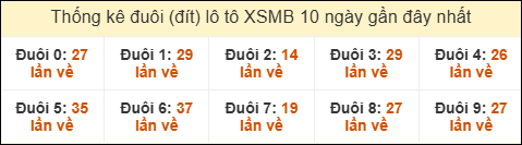 Thống kê tần suất đuôi lô tô Miền Bắc đến ngày 01/08/2025