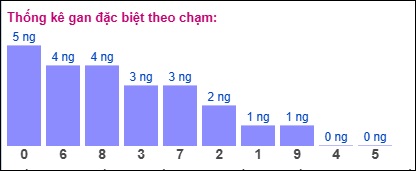 ⇒ Dựa vào bảng thống kê gan ĐB theo chạm đề, ta thấy chạm 0 (bao gồm 19 cặp số có chứa số 0), và 5 ngày chưa xuất hiện.