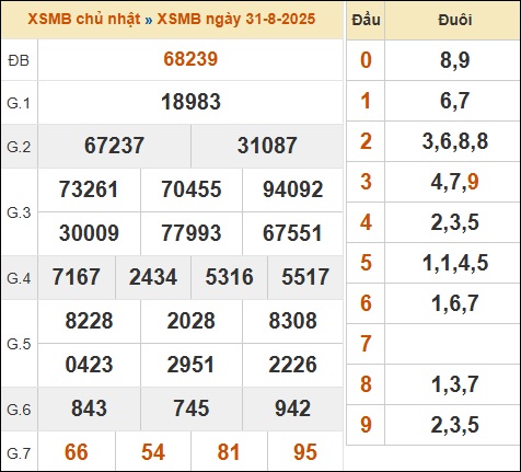 Theo dõi lại kết quả XSMB 31/08/2025 hôm qua