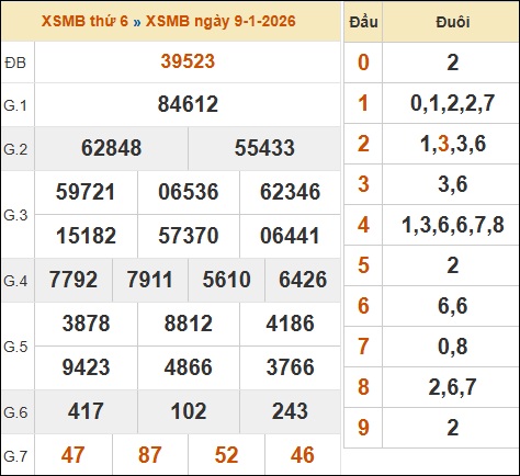 Thống kê XSMB hôm trước ngày 09/01/2026