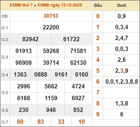 Thống kê XSMB hôm trước ngày 13/12/2025