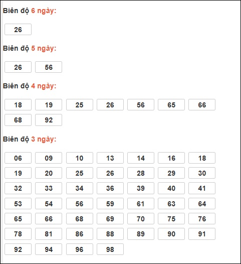 - Kỳ trước có loto: 96 ⇒ Thống kê loto hay về: 35
