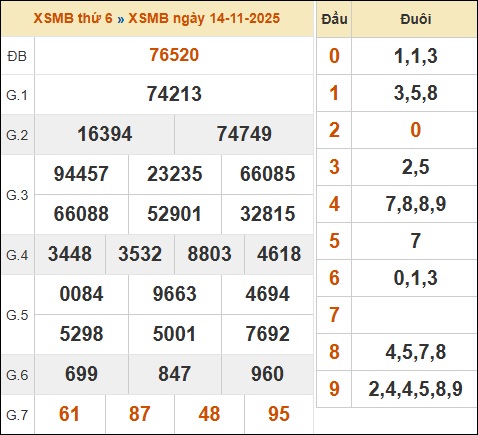Thống kê XSMB hôm trước ngày 14/11/2025