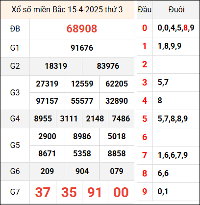=> Chi tiết thống kê đầu đuôi giải đặc biệt, lô tô xem tại: Thống kê 2 số cuối XSMB