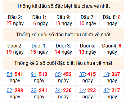 ⚡ Thống kê giải đặc biệt lâu chưa về: 54 - 91 - 85 - 37 - 10