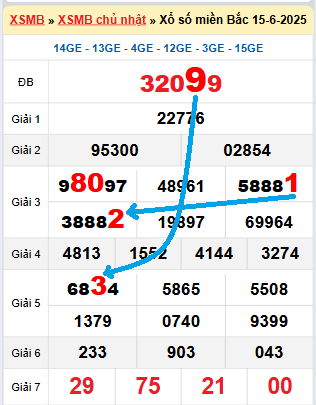 Kết quả xổ số miền Bắc ngày 15/6/2025