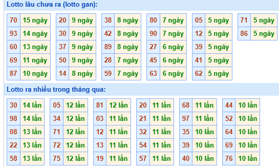 💰 Lô tô gan lâu ra nhất: 70 - 93 - 60 - 69 - 87 - 20 - 30