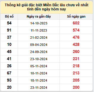 💰 Thống kê 2 số cuối GĐB MB lâu không về tính đến hôm nay: