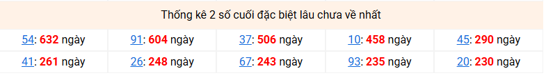 ⚡ Thống kê giải đặc biệt lâu chưa về: 54 - 91 - 37 - 10 - 45