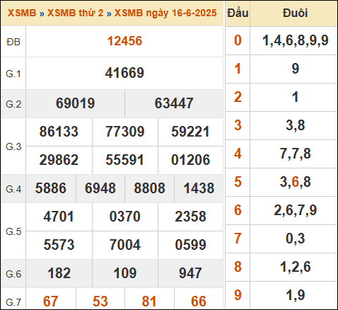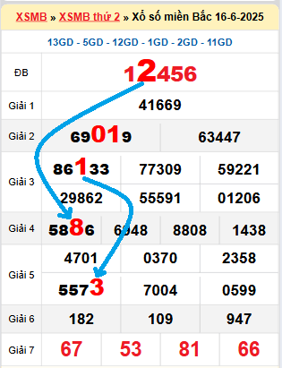 Kết quả xổ số miền Bắc ngày 16/6/2025