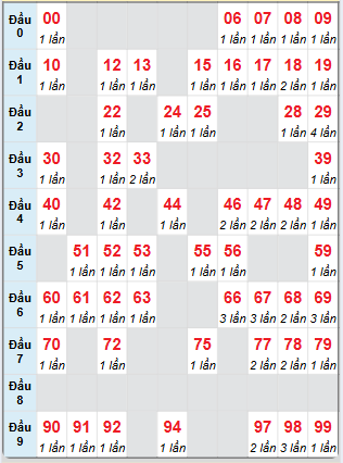 ⇒ Xem bảng tần suất lô tô MB từ 00 đến 99 trong 30 ngày gần nhất tại: