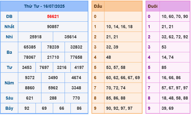 - Dự Trên kết quả XSMB ngày: 16/07/2025