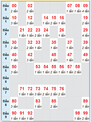 ⇒ Xem bảng tần suất lô tô miền Bắc các cặp số từ 00 đến 99 trong tháng chi tiết nhất tại: