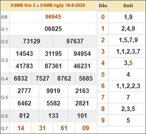 1. ✔️Xem lại bảng KQXSMB hôm qua 18/08/2025
