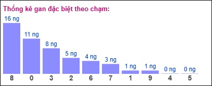 ⇒ Số liệu thống kê cho biết chạm ĐB lâu không xuất hiện nhất là chạm 8, bao gồm 19 cặp số chứa số 8. Đã trải qua 16 ngày chưa về.