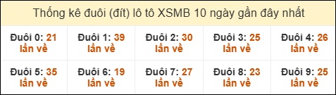 Thống kê tần suất đuôi loto MB đến ngày 19/08/2025