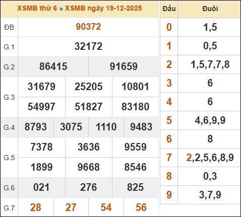 Thống kê XSMB hôm trước ngày 19/12/2025