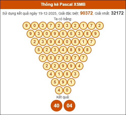 Bình luận kết quả xổ số Miền Bắc 20/12/2025 dựa vào tam giác Pascale (được tính theo giải GĐB và giải Nhất ngày hôm trước):