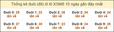 Thống kê tần suất đuôi lô tô Miền Bắc đến ngày 20/12/2025