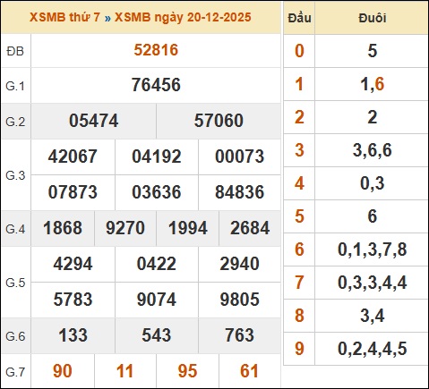 Thống kê XSMB hôm trước ngày 20/12/2025